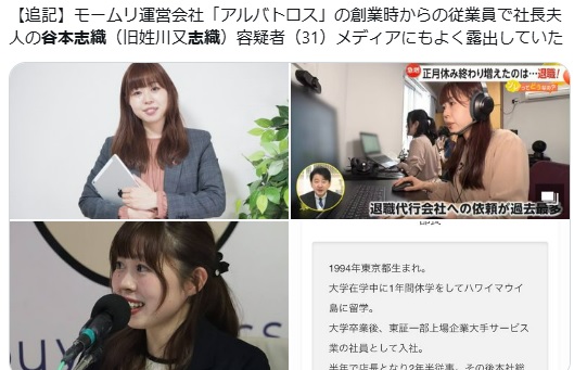 谷本志織容疑者の美人顔画像・学歴!谷本慎二容疑者とともに逮捕!退職代行「モームリ」社長と妻 公開日:2026年2月3日 事件 退職代行サービス「モームリ」の社長夫妻が逮捕されたこの事件は、主に**「弁護士法(第72条)」**という法律に違反した疑いが持たれています。 一般的に「退職代行」というビジネス自体がすべて違法なわけではありませんが、今回 […] 続きを読む