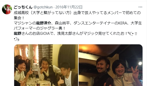 龍野さんのお店GIOIAで、浅見太郎さんがマジック見せてくれたお!٩̋(ˊ•͈ ꇴ •͈ˋ)و pic.twitter.com/pY2xR4RkBb— ごっちくん (@gotchkun) November 22, 2016
