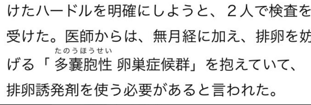 「多嚢胞性卵巣症候群」を抱え、排卵誘発剤を使う必要があることを告